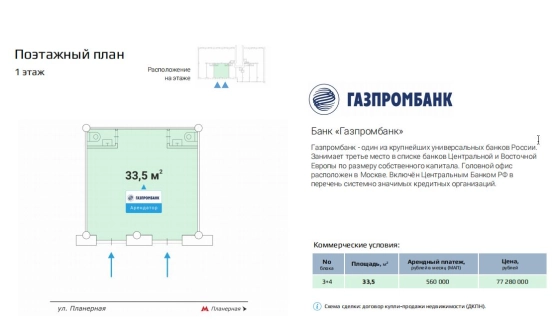 Продажа готового арендного бизнеса с надежным арендатором Газпромбанк по адресу улица Планерная, 12к1с2.