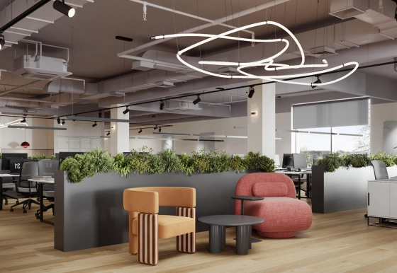 Сдается офис с новой отделкой и мебелью. Рассчитан на 73 рабочих места. Готов к заселению с августа 2026 года.
