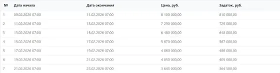 Проведение торгов: с 09/02/2026 07:00 до 23/02/2026 07:00