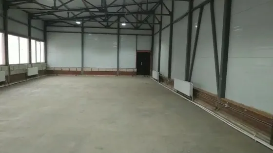 Полы армированные железобетонные со стяжкой, стены и потолок помещения - сендвич панели 20 см. Стены офисного здания пеноблок 40 см. Помещение с обособленными коммуникациями, отопление газовое, своя газовая котельная, вода -скважина, канализация - септик. Разводка есть. Место разгрузки можно формировать в любом месте.