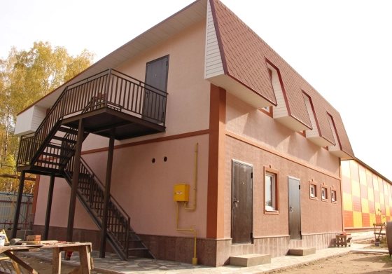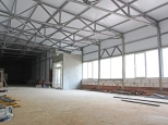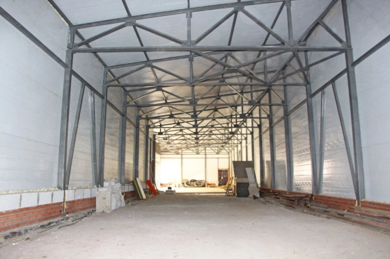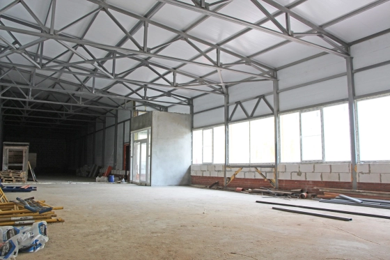 Общая площадь - 498 м2. Состоит из теплого помещения площадью 330 м2 с потолками 3,9 метра до низа фермы и административного двух этажного здания общей площадью 168 м2. Мощность - 40 кВт.