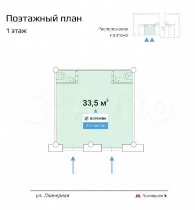 Продажа готового арендного бизнеса с надежным арендатором Газпромбанк по адресу улица Планерная, 12к1с2.