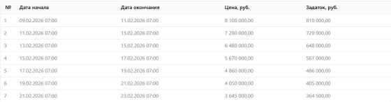 Проведение торгов: с 09/02/2026 07:00 до 23/02/2026 07:00
