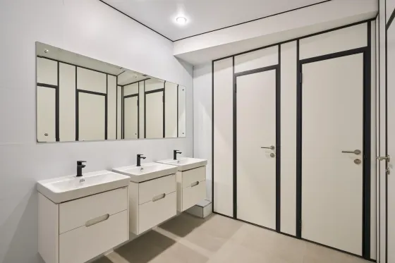 Приточно-вытяжная вентиляция, центральное отопление. Многоуровневый отапливаемый паркинг. Зарядные станции для электромобилей мощностью 22 КВт. 6 высокоскоростных лифтов с панорамным видом на Москву. Отдельный сервисный лифт с зоной разгрузки. Система контроля доступа — по картам, через мобильное приложение, по системе Face ID. Спринклерная система пожаротушения во всех помещениях. Система пожарной сигнализации ESMI. Круглосуточная система видеонаблюдения.