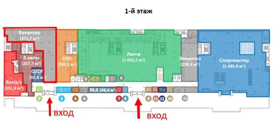 Общая площадь - 380 м2. Зона разгрузки, дебаркадер. Мощность 40 кВт. Находится между DNS и OZON. Выход во двор для погрузки-разгрузки.