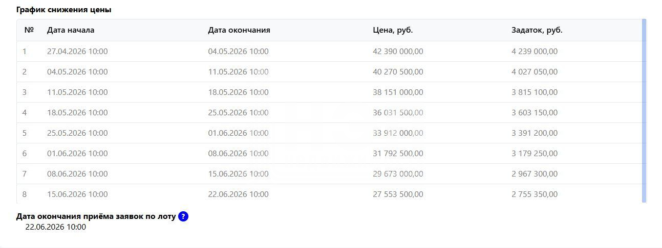 | Проведение торгов: с 27/04/2026 10:00 до 22/06/2026 10:00 |